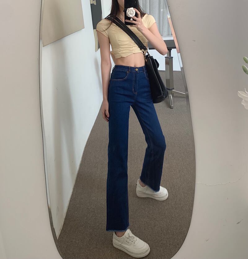 ジーンズ サマーダークブルーハイウェストパンツ 夏物 試着室76716468020