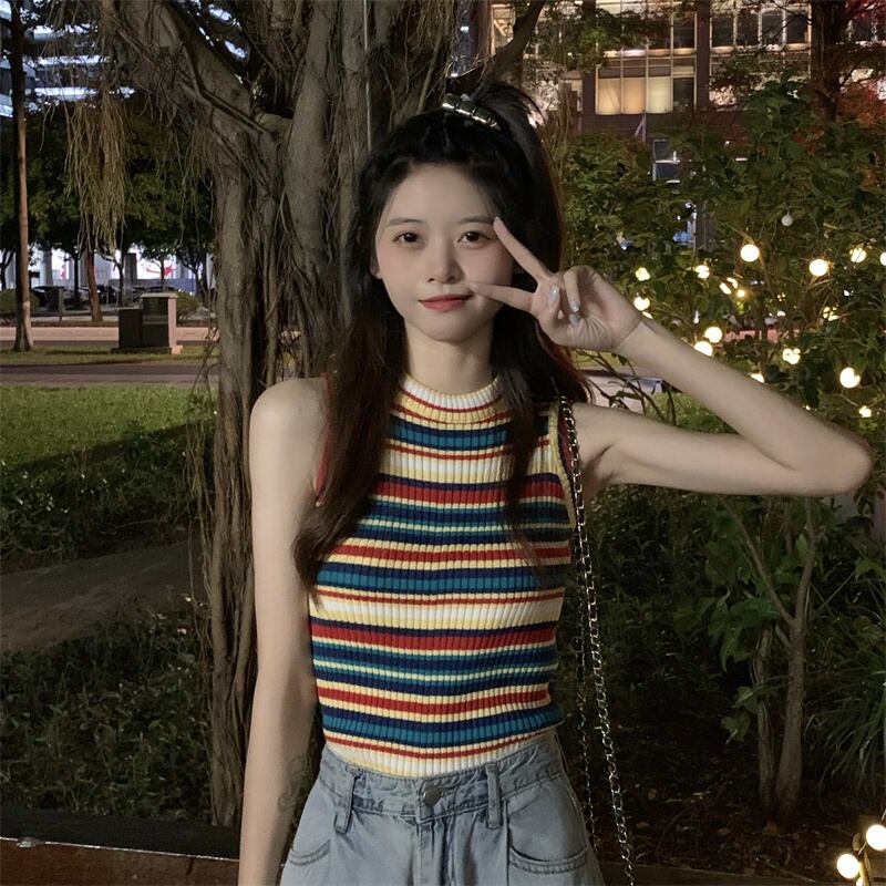 ストライプニットサマーノースリーブトップス ドレス 夏物 試着室96872577452