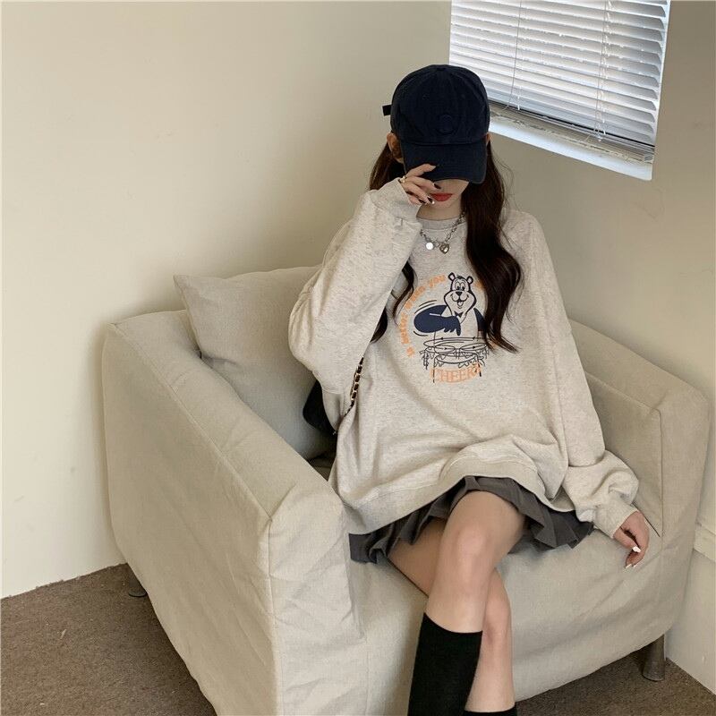 ラウンドネックセーター スプリングオータム薄手ルーズスタイル ロング 春物 秋物 Oネック 試着室40485399631