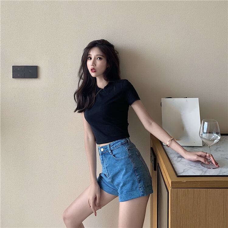 ハイウェストウェストショーツ サマー薄手レッドルーズブラックAラインパンツ 夏物 ブルマー 試着室72681120114