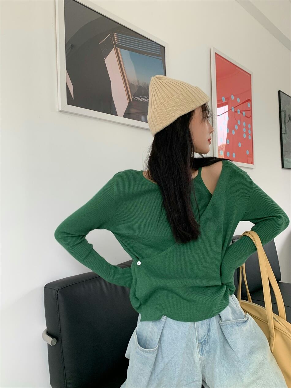 ブラックセーター スプリングオータム薄手スタイルトップス ロング 春物 秋物 試着室24219172889