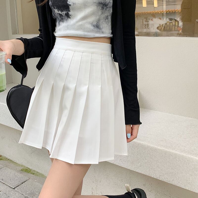 ブラックプリーツスカート サマー薄手ハイウェストウェストAラインショート 夏物 試着室81436855058