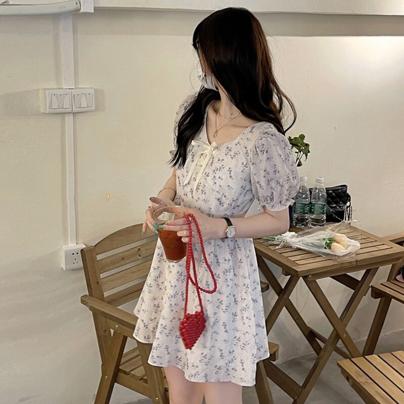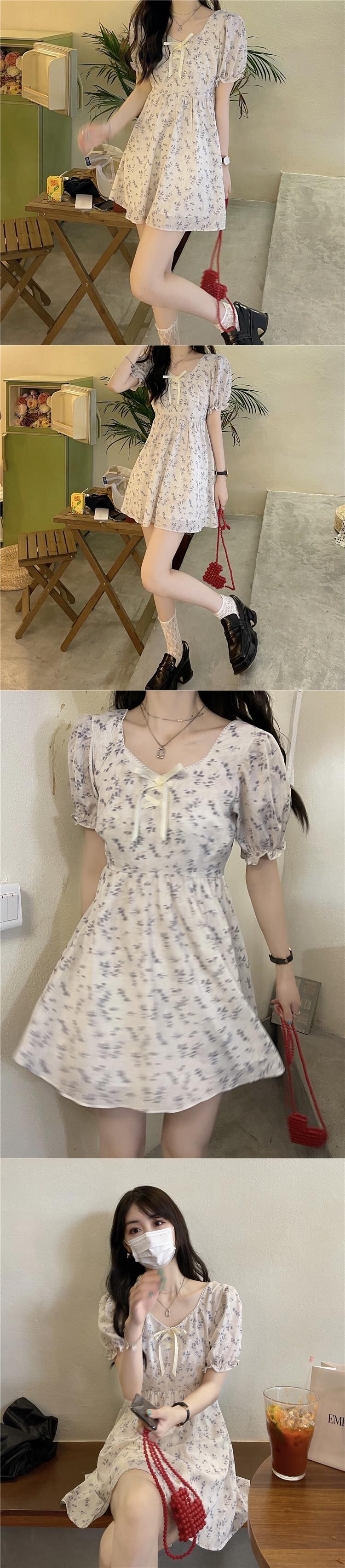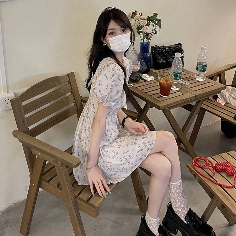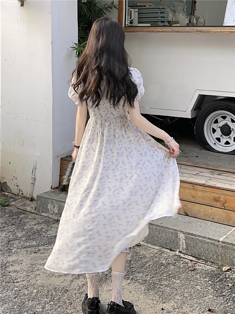 フローラルドレス サマースリーブロングスカート 大人ガーリー スウィート キュート カジュアル 夏物 花柄 試着室12479176056
