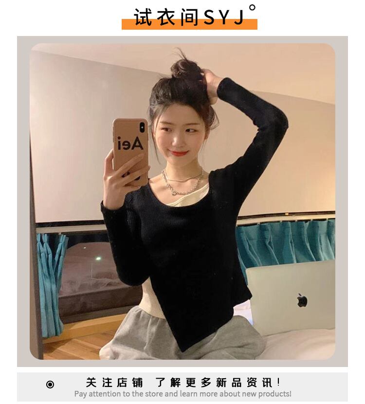 スタイルブラックTシャツ スプリングオータムショートトップス ロング 大人ガーリー スウィート キュート カジュアル 春物 秋物 試着室86903253748