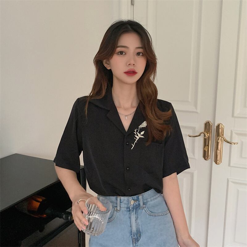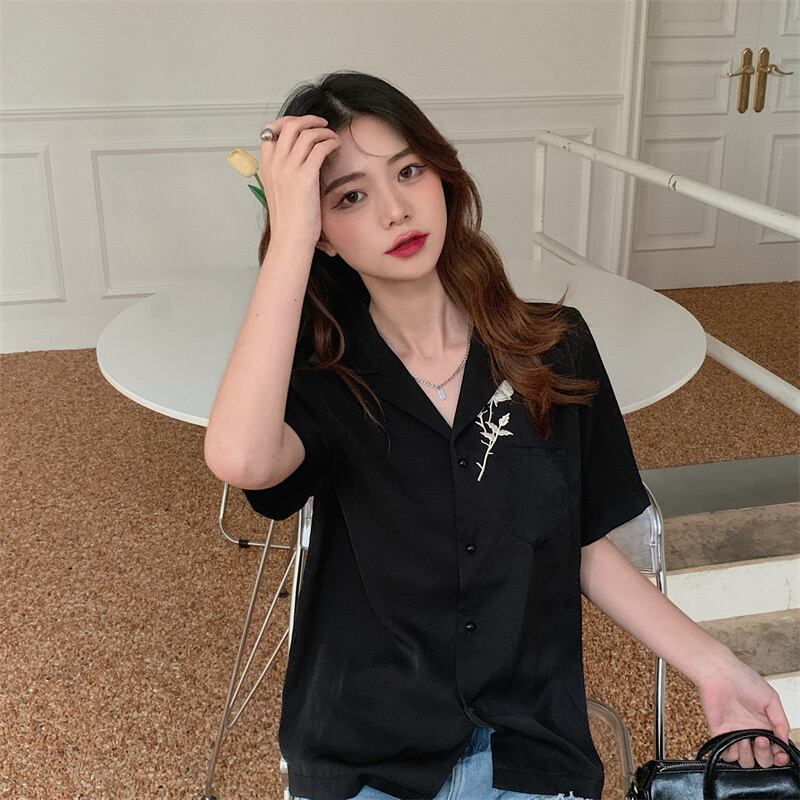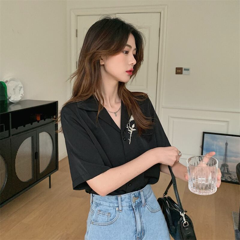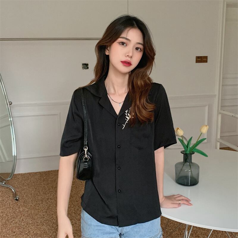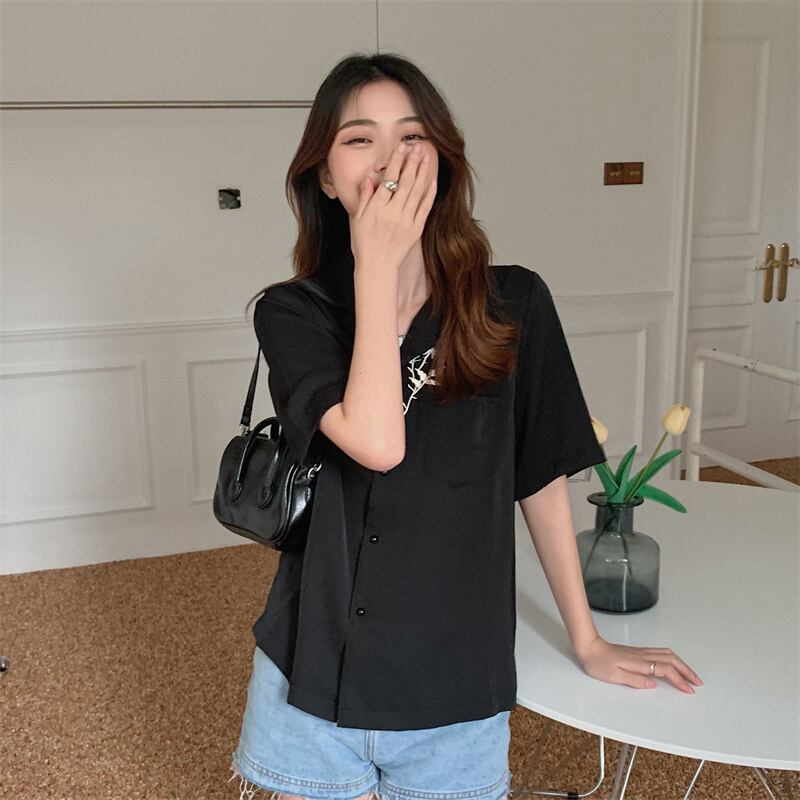 ブラックシャツ サマー薄手スタンダードスタイルトップス レトロ 夏物 試着室64790881447