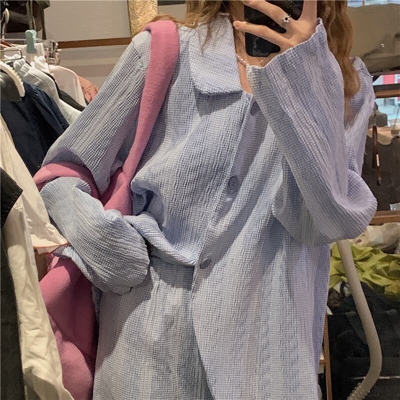 シャツ ジャケット スプリングオータムスタンダード ロング レトロ 春物 秋物 試着室54153897341
