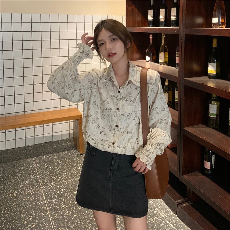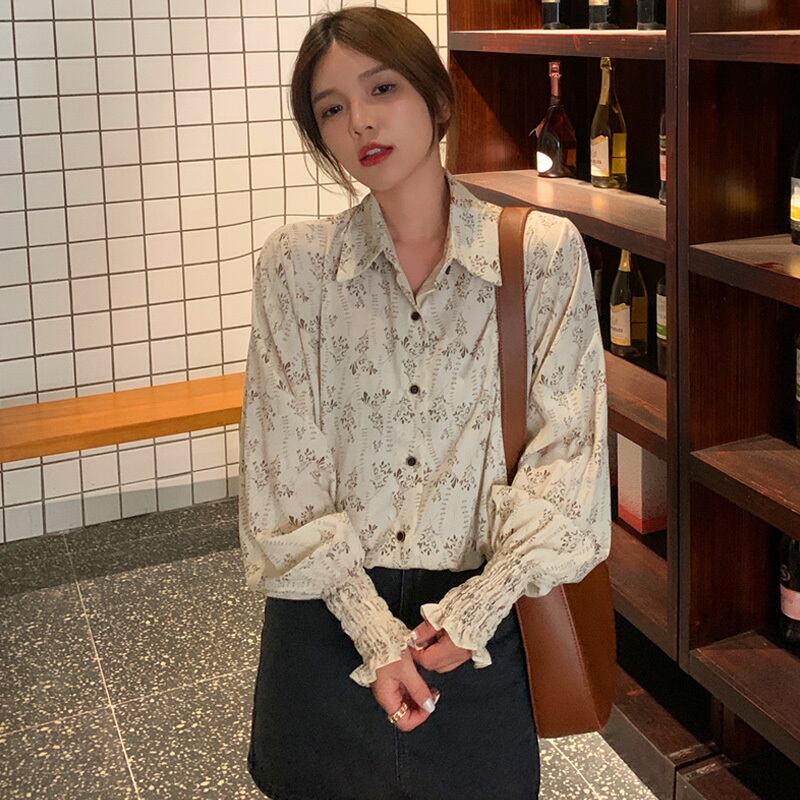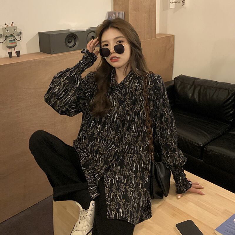 スプリングオータムシャツ スタンダードスタイルトップス ロング レトロ 春物 秋物 試着室3192188994