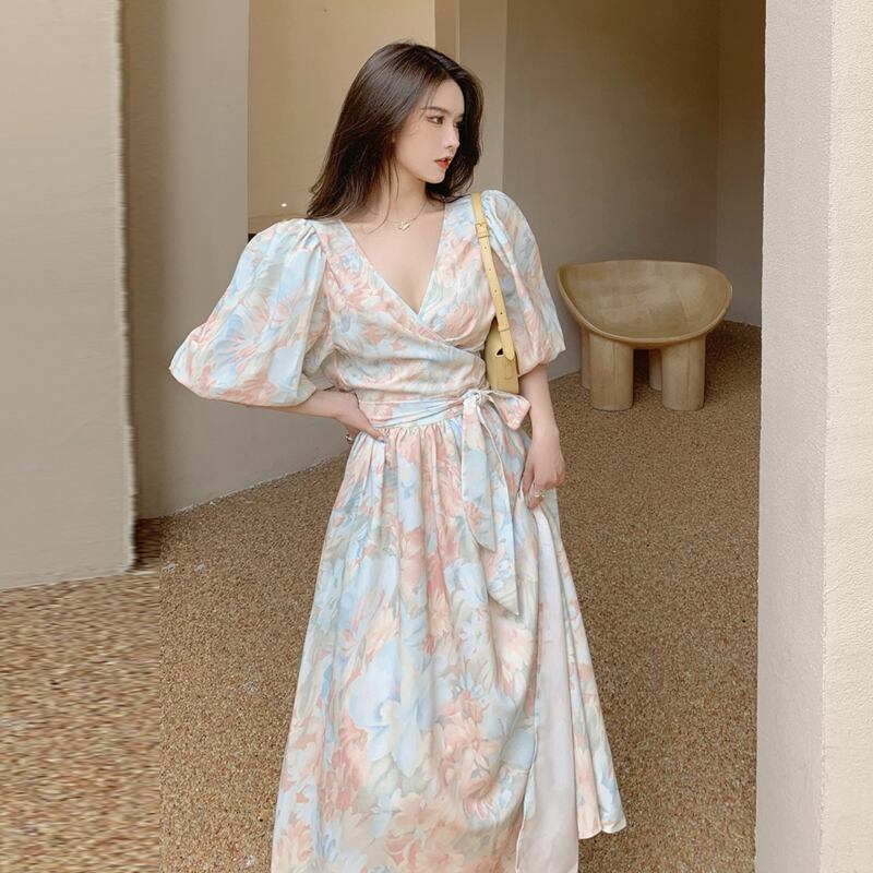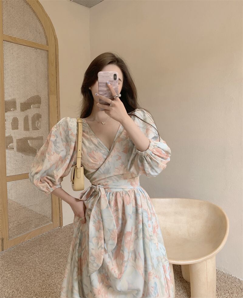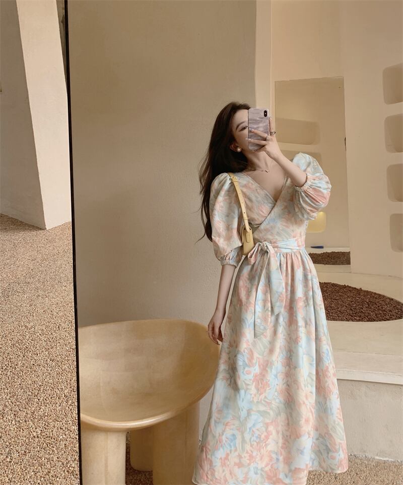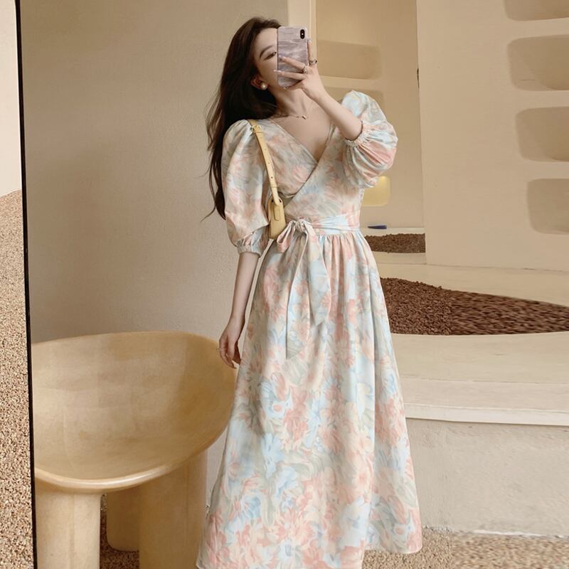 スリーブVネックドレス サマースタイルロングスカート 夏物 試着室94303528358