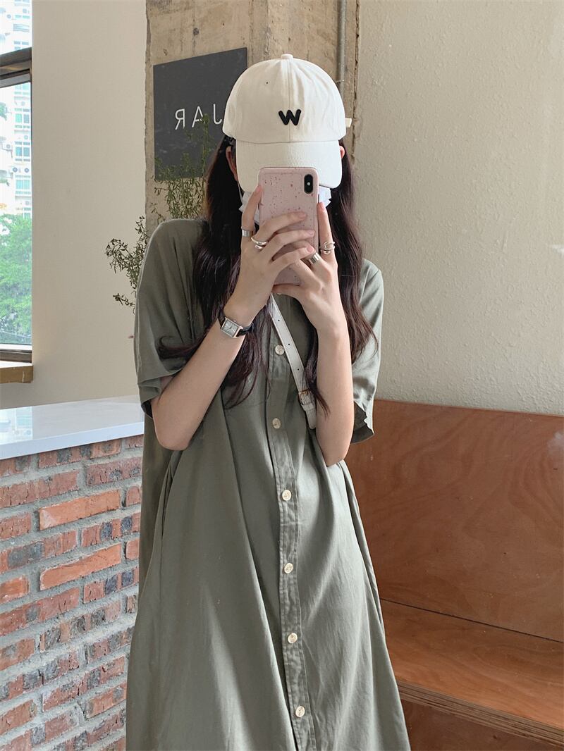 シャツ ドレス サマースタンダードルーズロングスカート レトロ 夏物 試着室86300638058