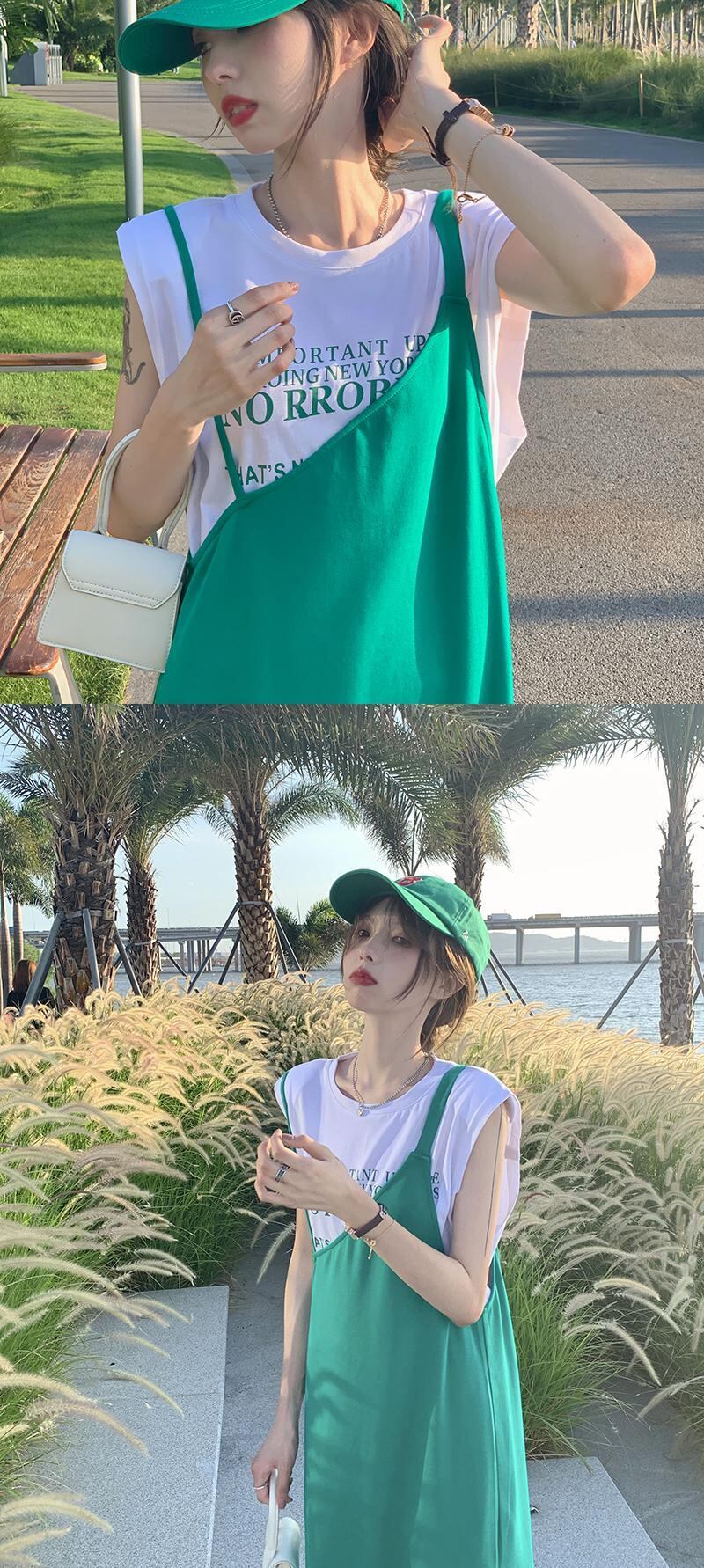 色:青いサスペンダードレスワンピース,緑のサスペンダードレスワンピース,青いTシャツワンピース,グリーンTシャツシングルピース