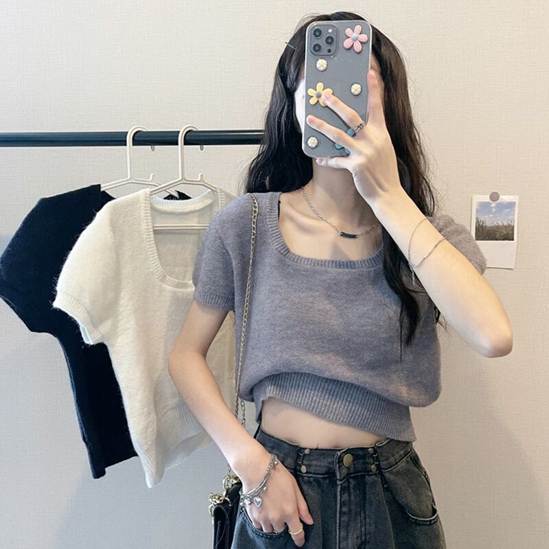 ショートTシャツ サマーハイウェストウェストトップス 夏物 スクウェア 試着室68384701718
