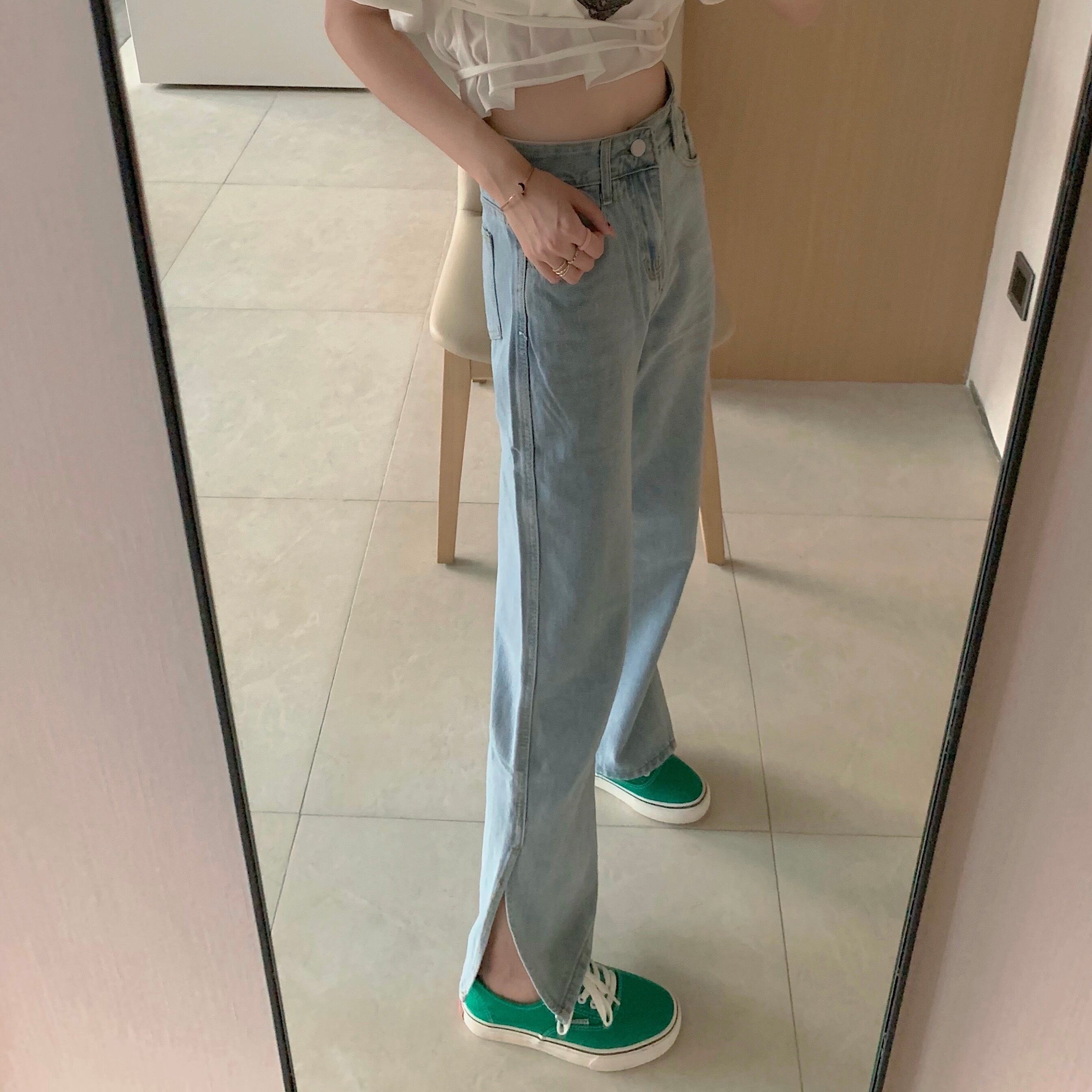 スプリングオータムジーンズ サマー薄手ルーズハイウェストウェストワイドレッグパンツ 春物 夏物 秋物 ワイドパンツ 試着室6319408323