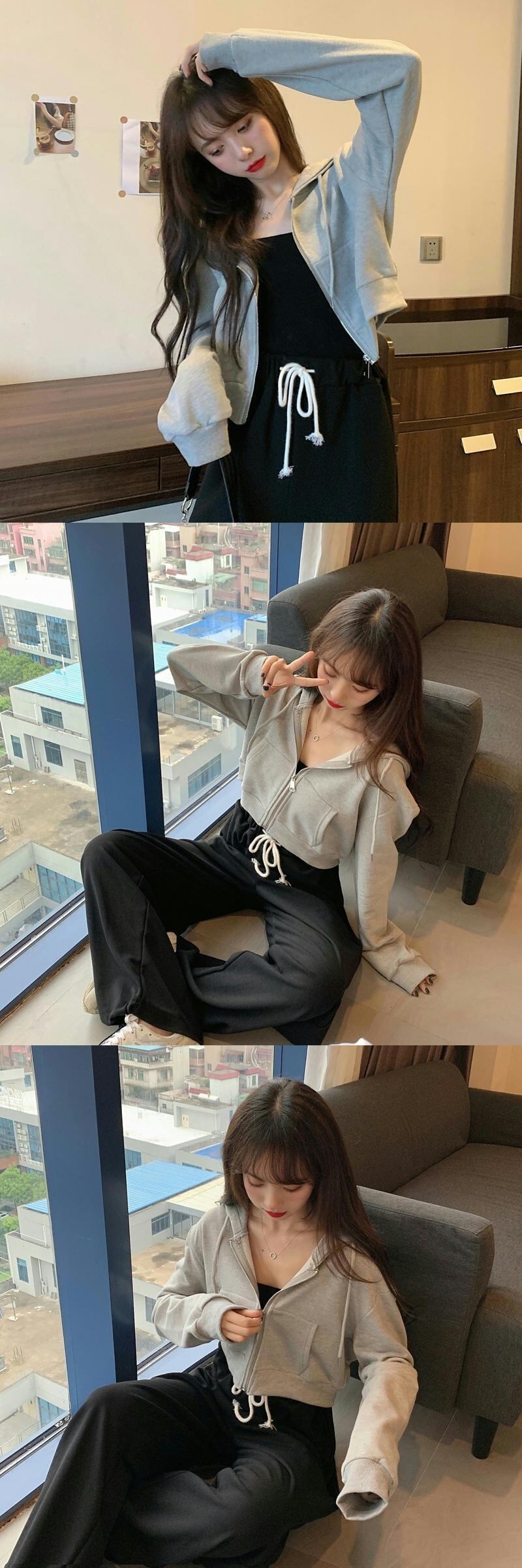 グレーフードセーター コート スプリングオータム薄手ショート 春物 秋物 試着室33370797722