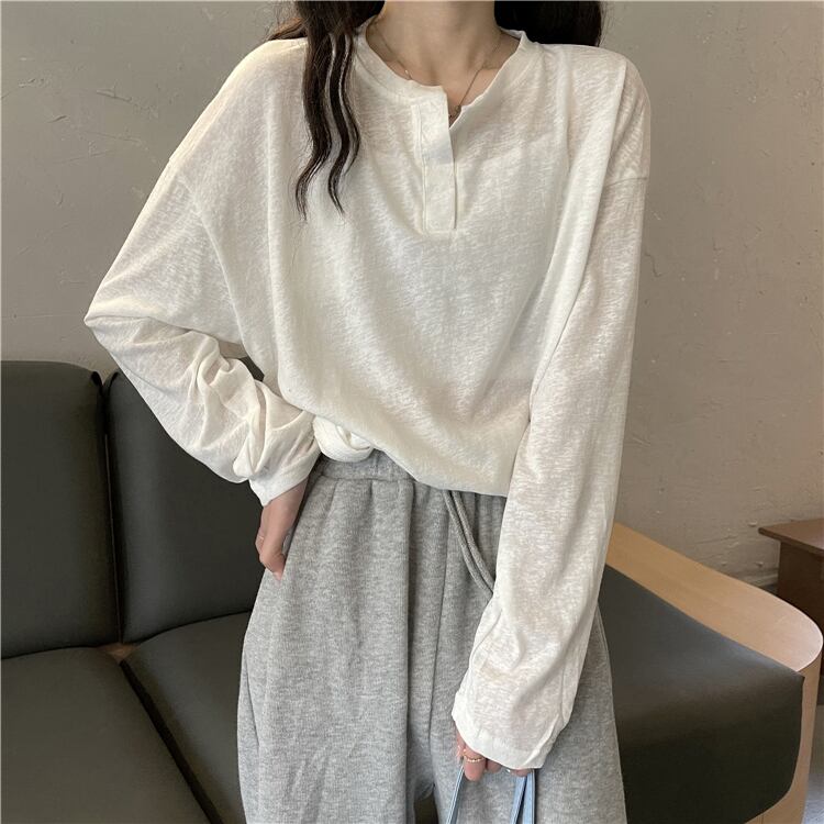 ホワイトTシャツ シャツ スプリングオータムルーズ ロング 春物 秋物 試着室36291377294