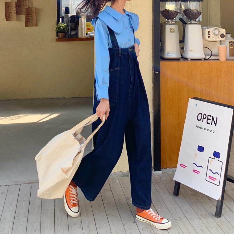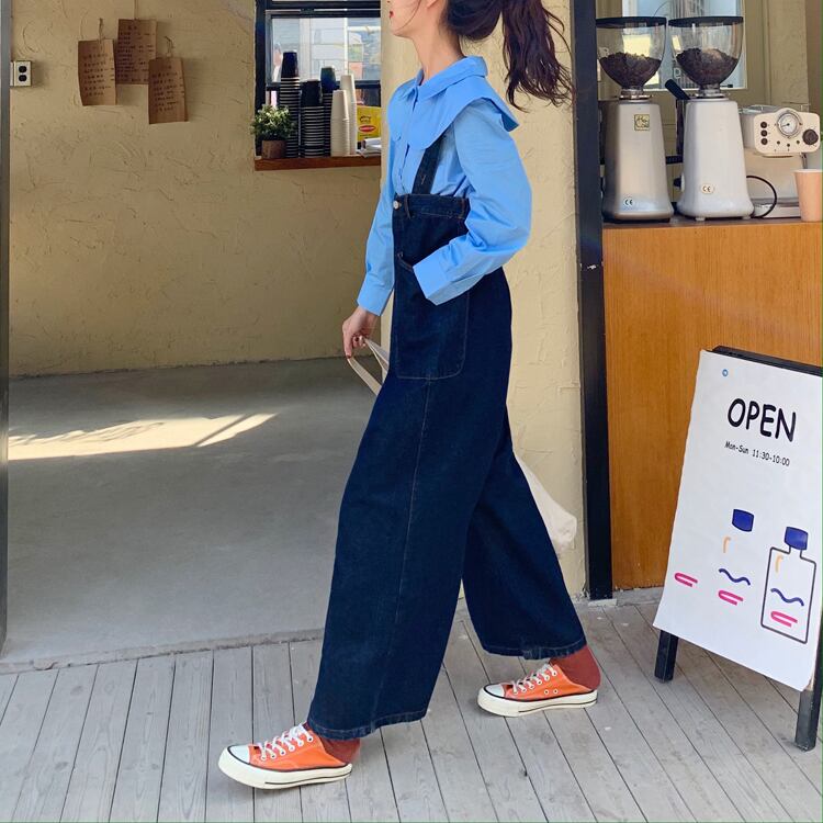 オーバーオール スプリングオータムハイウェストパンツ ルーズスリム 春物 秋物 試着室17580303723
