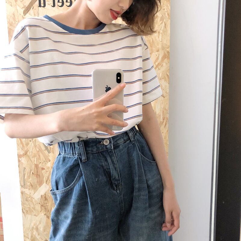 サマールーズストライプTシャツ 薄手トップス 夏物 試着室35732504603