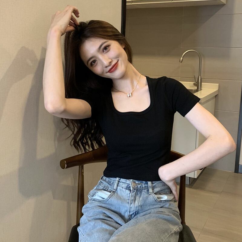 ブルーショートTシャツ サマーカラースリム 夏物 スクウェア 試着室20162912194