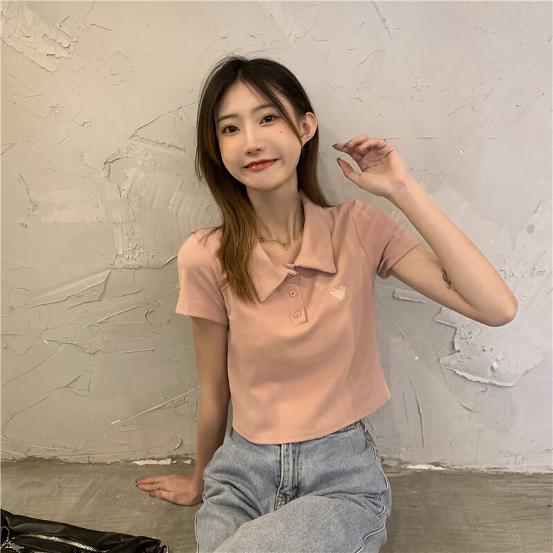 カラーショートTシャツ サマートップス ピンク 夏物 試着室18494579855