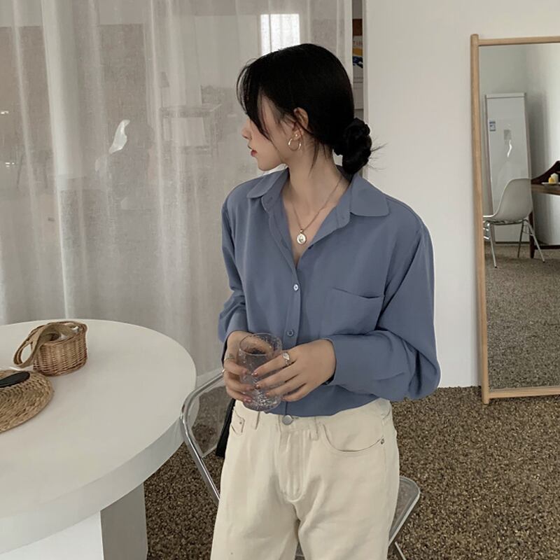 スプリングオータムシャツ スタンダードトップス ロング レトロ 春物 秋物 パープル 試着室71699926542