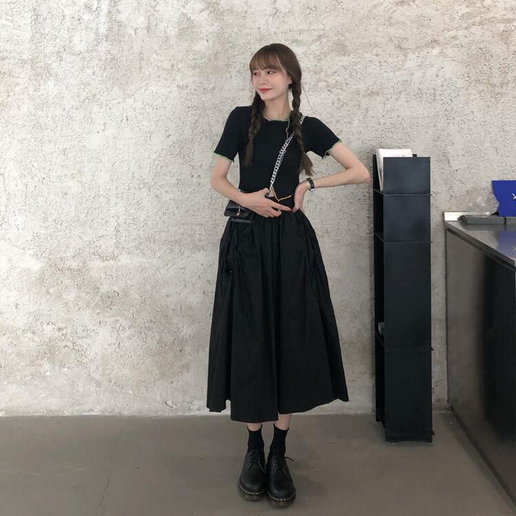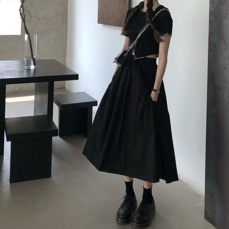 ブラックスカート サマー薄手ハイウェストウェストAラインロング 大人ガーリー スウィート キュート カジュアル 夏物 試着室35605419989