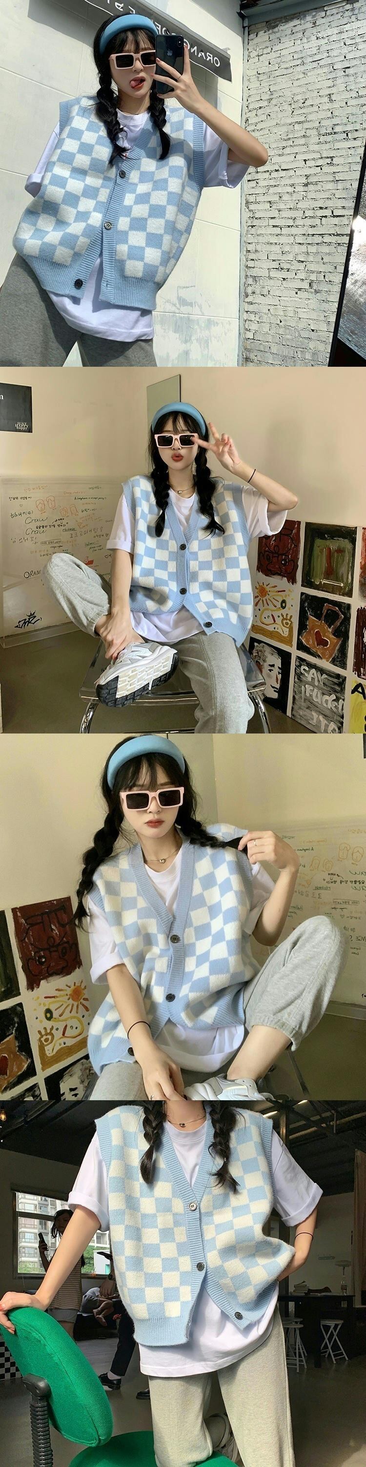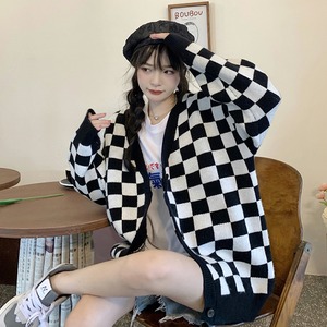 格子柄ニットスプリングオータムセーター レッド 春物 秋物 試着室63958103610