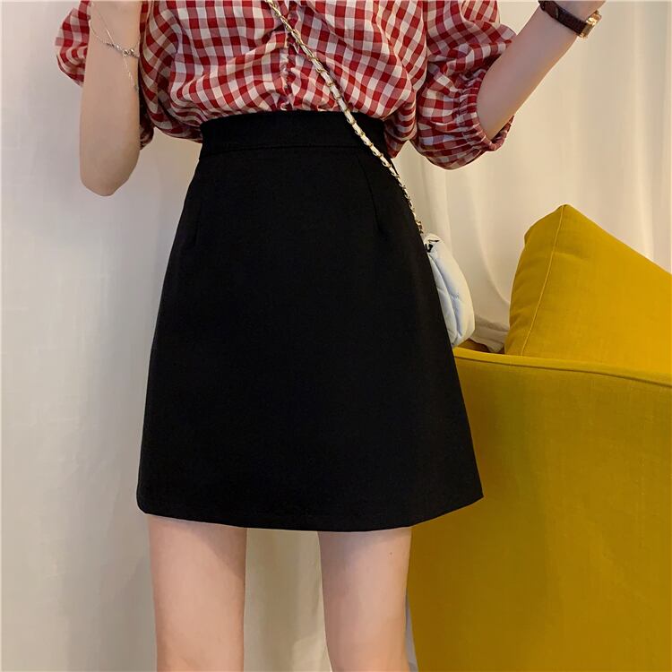 ブラックスカート ハイウェストウェストAラインサマースタンダードショート レトロ 夏物 試着室72286724727