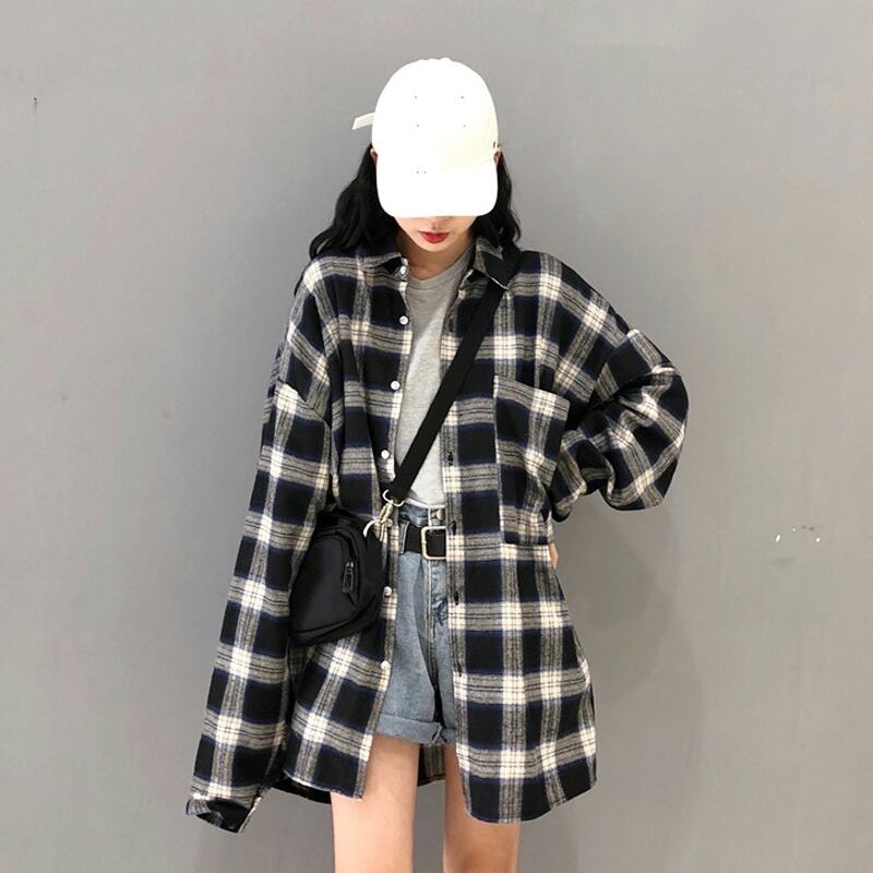 格子柄シャツ ジャケット スプリングオータムルーズトップス 春物 秋物 試着室6101131794