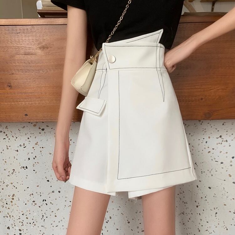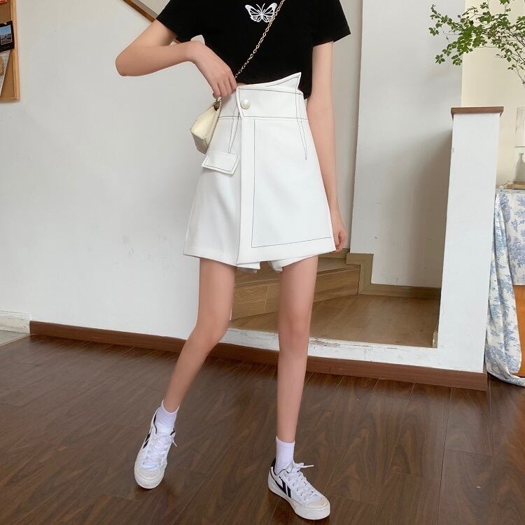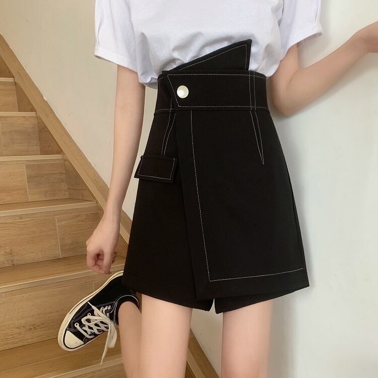 ブラックスカート レディースサマー薄手ハイウェストウェストAラインショート 夏物 試着室24075929010