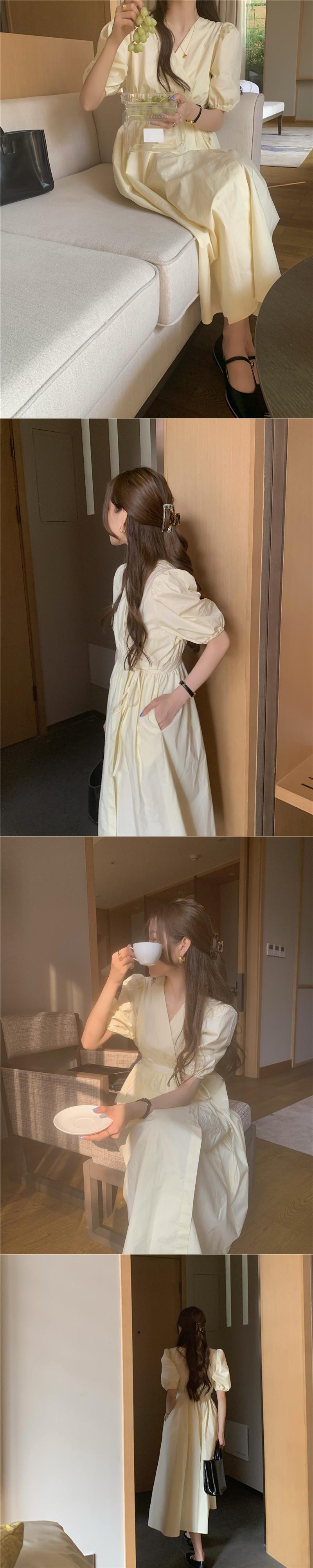 スリーブドレス サマースタイルVネックロングスカート 夏物 試着室59363010693