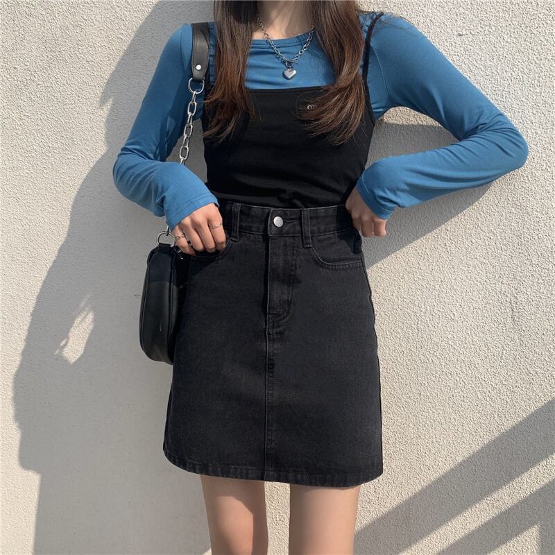スカート サマーレッドショートハイウェストウェスト薄手Aライン 夏物 試着室60692044982