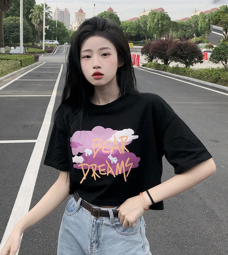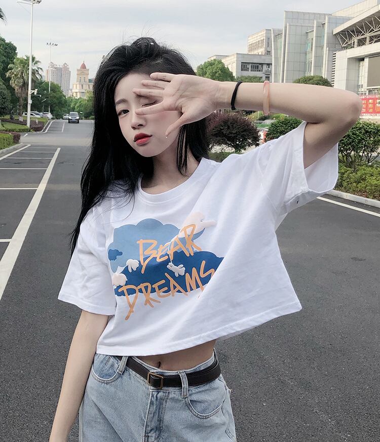 スタイルホワイトショートTシャツ レディースサマー薄手ルーズトップス かわいい 夏物 試着室77426396450