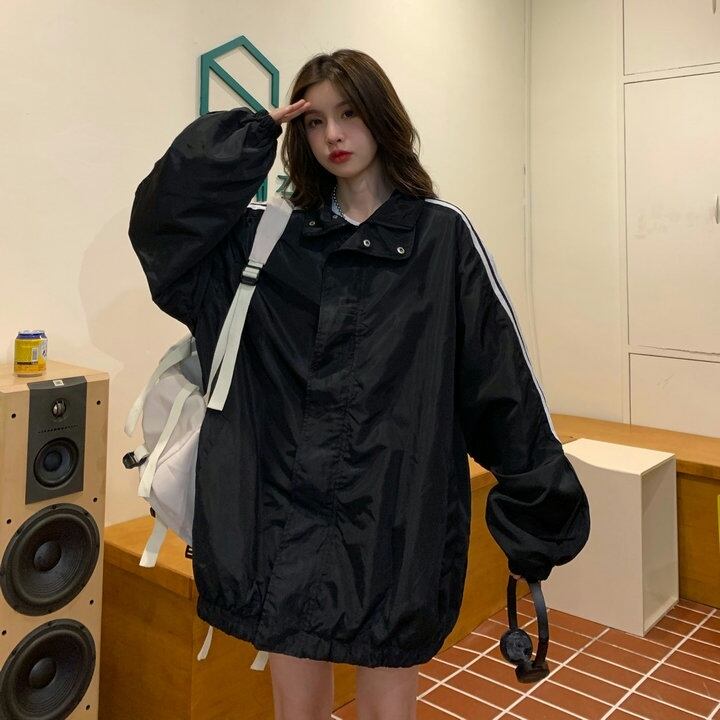 ブラックカジュアルジャケット スプリングオータムルーズ 春物 秋物 試着室66332114266
