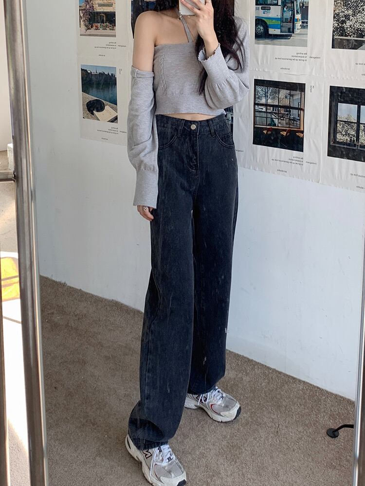 ウェストワイドレッグジーンズ スプリングオータムルーズパンツ 春物 秋物 ワイドパンツ 試着室29232849898