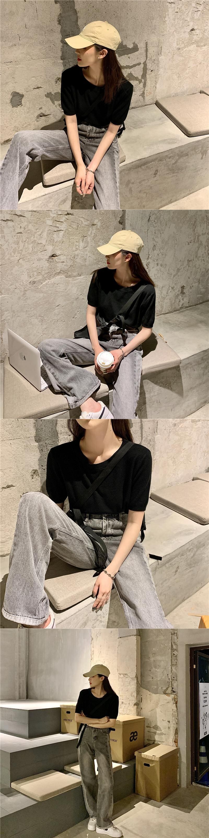 カラーTシャツ サマー薄手レッドトップス 夏物 試着室20333736838