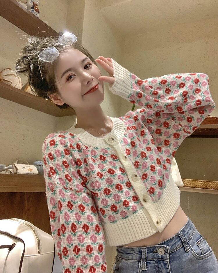 ショートセーター コート カーディガンスプリングオータムスタンダードルーズ レトロ 春物 秋物 試着室89242257429