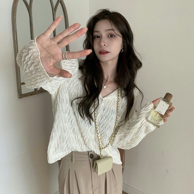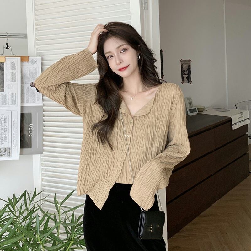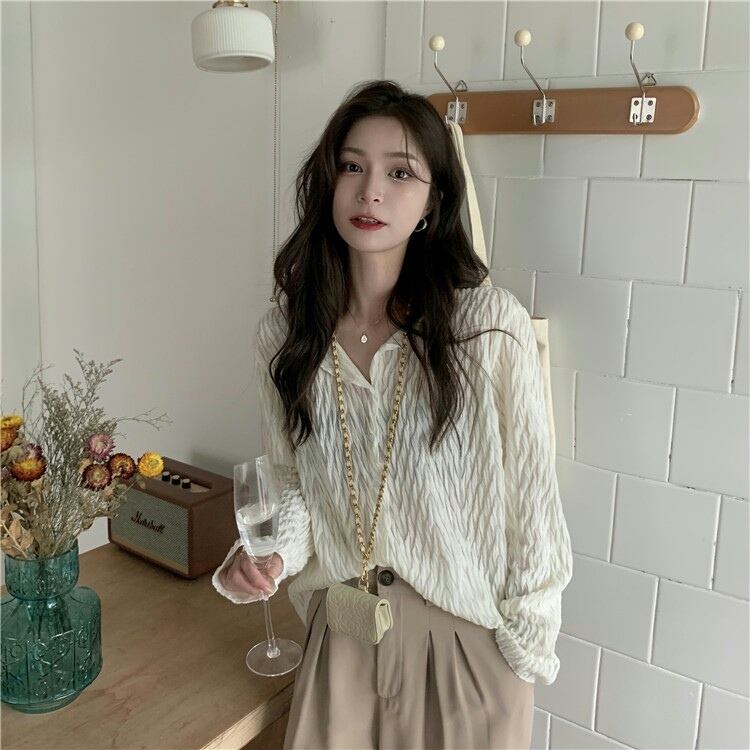 シャツ スプリングオータムスタンダードスタイルブラウス ロング レトロ 春物 秋物 試着室34706946744