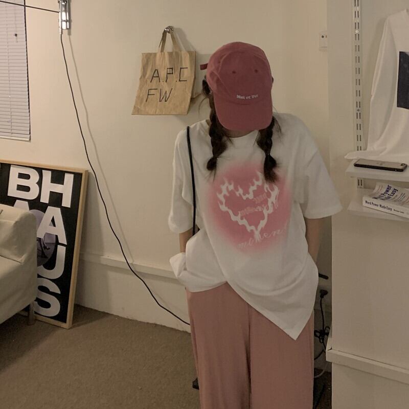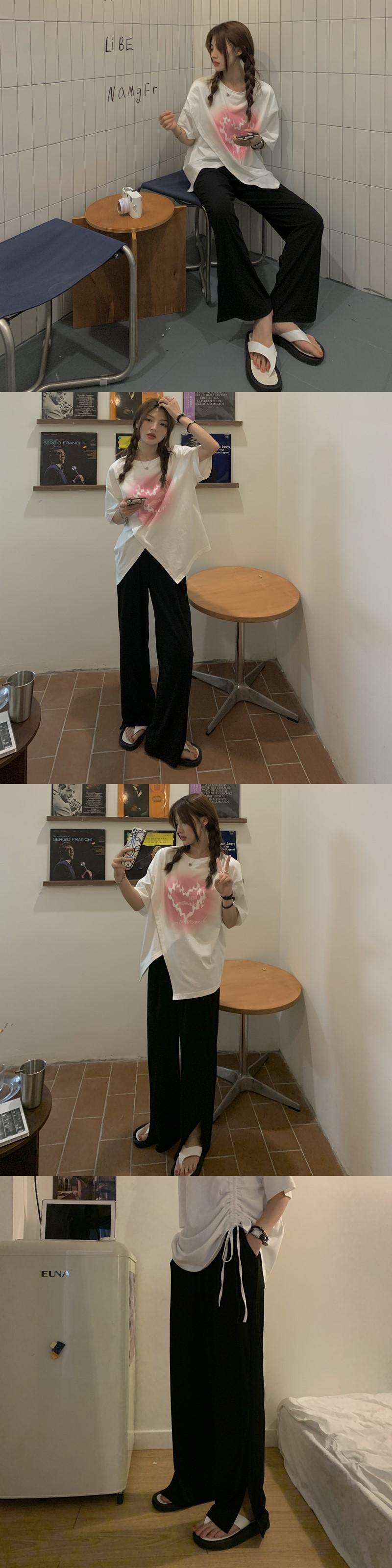 色:ホワイトTシングルピース,シングルブラックパンツ,ピンクパンツのワンピース