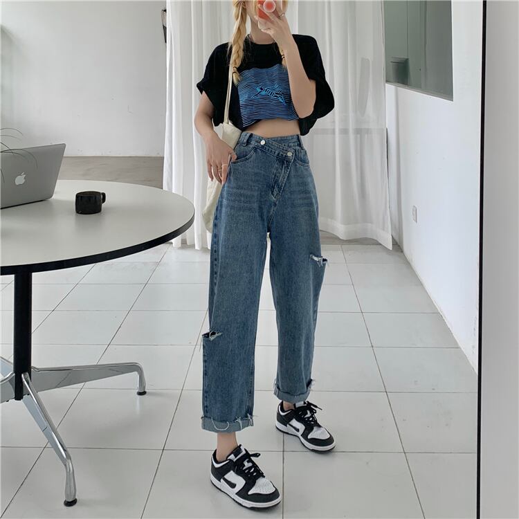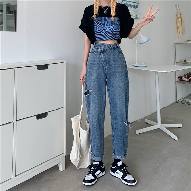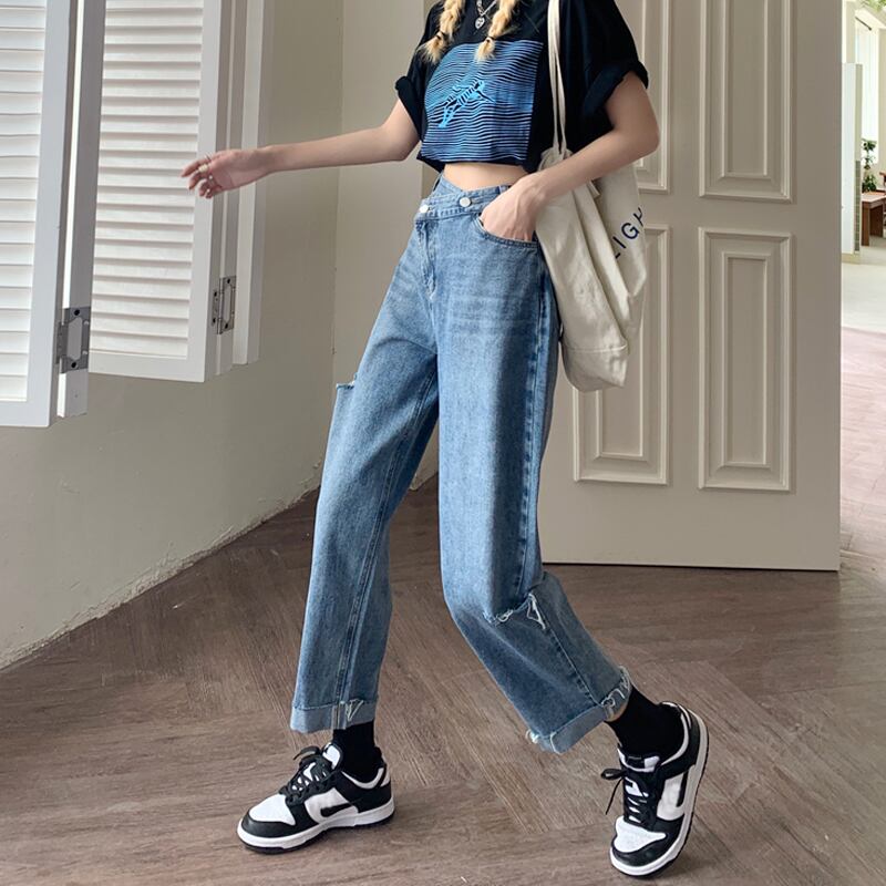ジーンズ スプリングオータム薄手ハイウェストウェストルーズパンツ 春物 秋物 試着室42755008338
