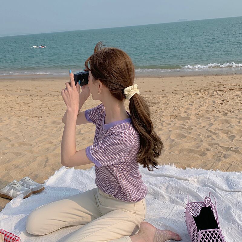 Tシャツ サマールーズニットトップス 夏物 パープル 試着室39170402683