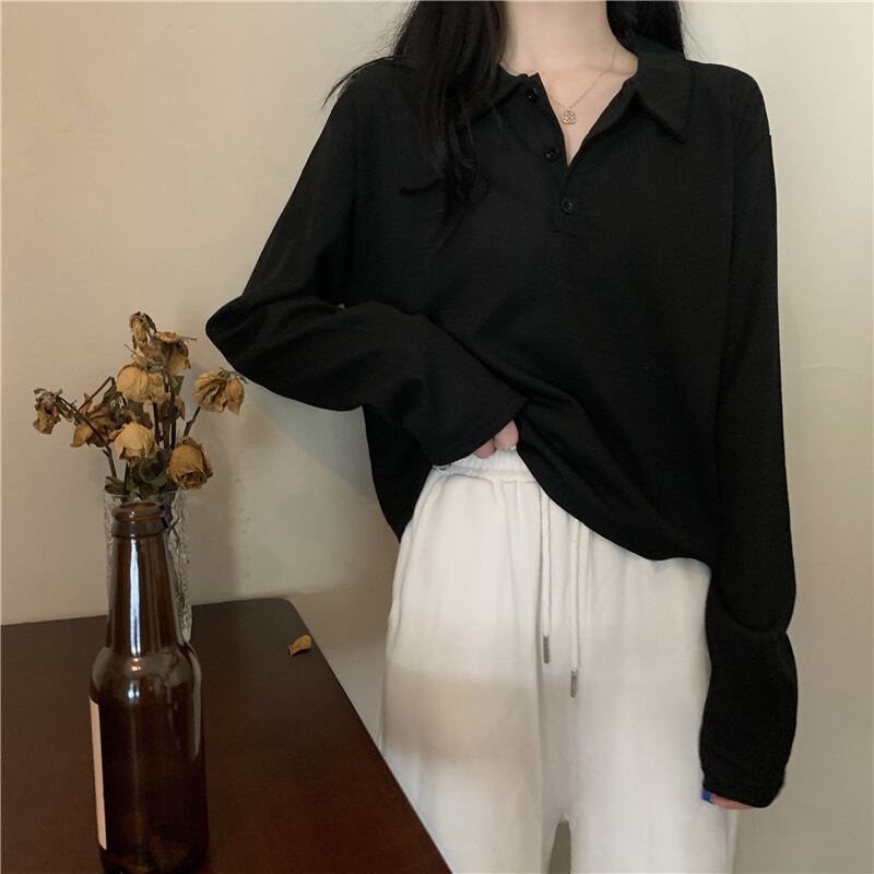 カラーTシャツ シャツ スプリングオータムルーズショートトップス ロング 春物 秋物 試着室27662399124