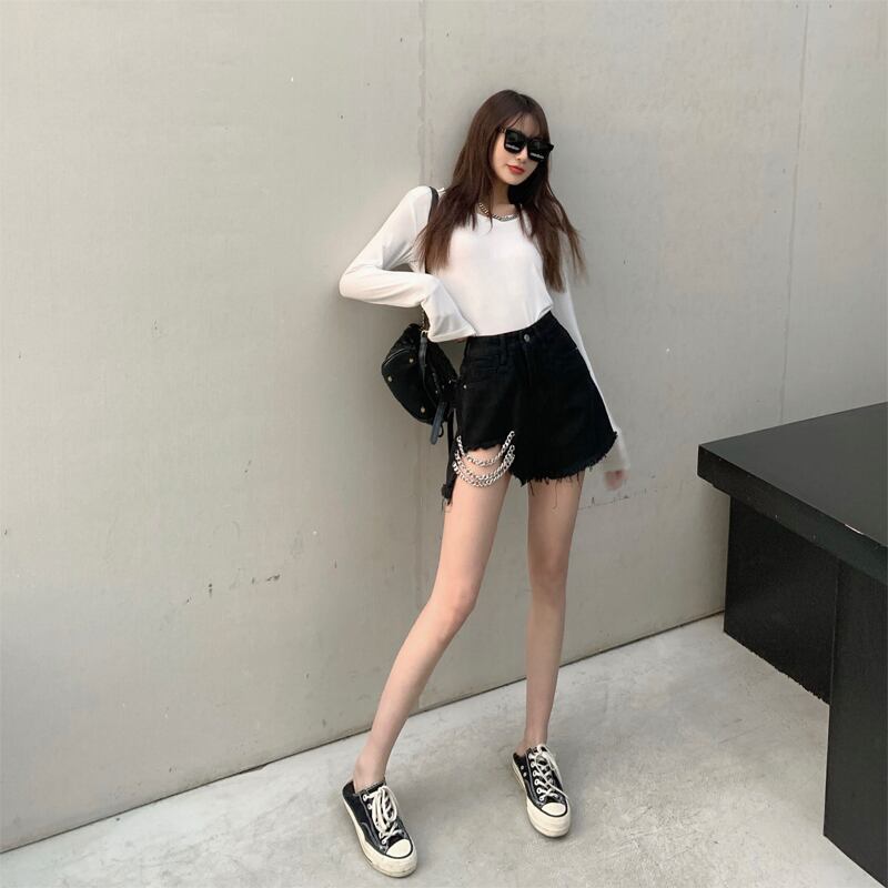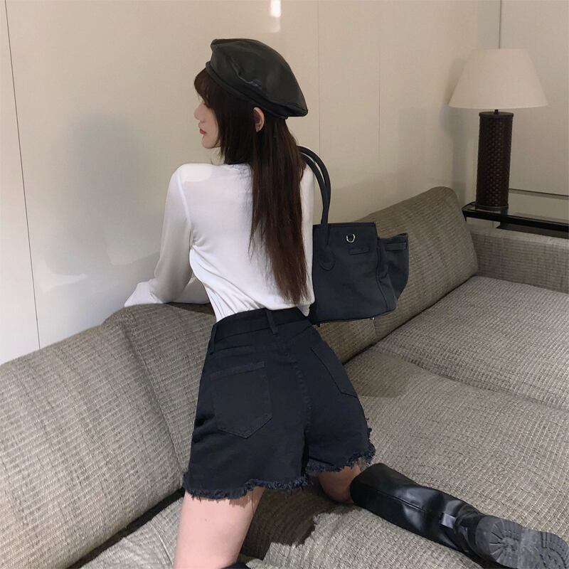 ブラックショーツ サマー薄手ハイウェストウェストルーズAラインパンツ 夏物 ブルマー 試着室75455246863