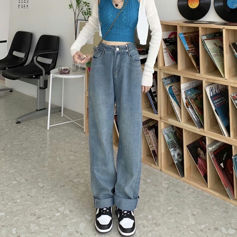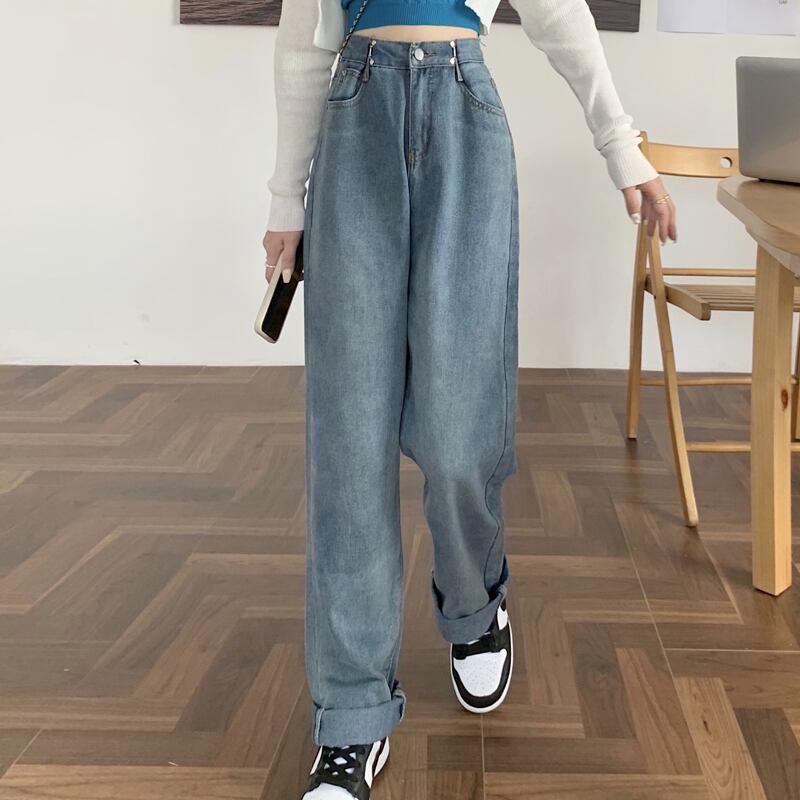 ワイドレッグジーンズ スプリングオータムスタンダードパンツ ハイウェストウェストルーズ レトロ 春物 秋物 ワイドパンツ 試着室56479148299