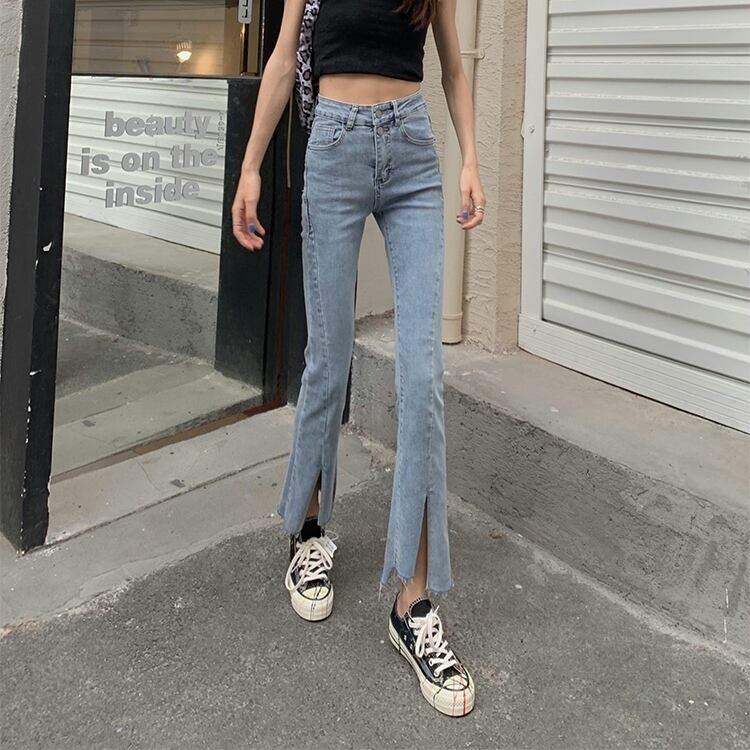 ジーンズ スプリングオータムハイウェストウェストスリムクロップド レッド 春物 秋物 試着室34090231672