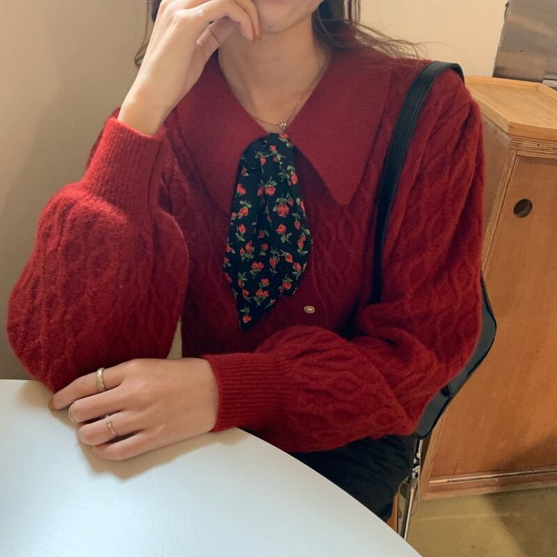 レッドセーター カーディガンジャケット スプリングオータムルーズトップス ロング 春物 秋物 試着室41371340068