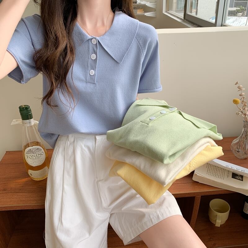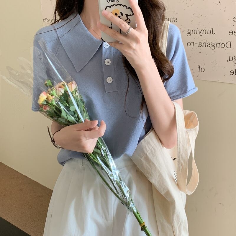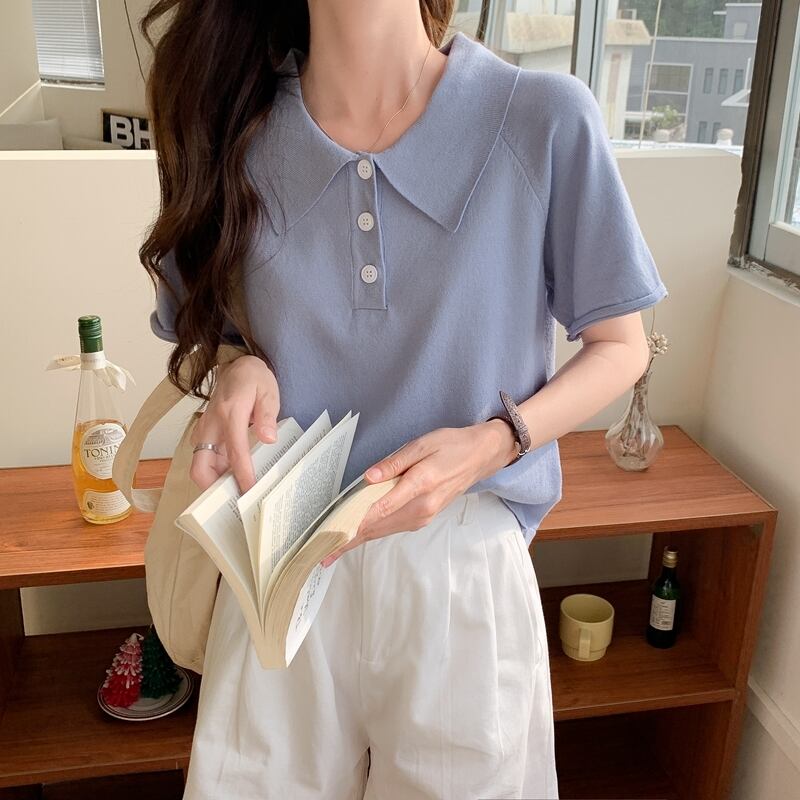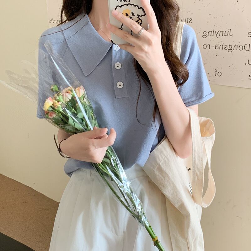 カラーブルーTシャツ サマールーズニット 夏物 試着室61277087698