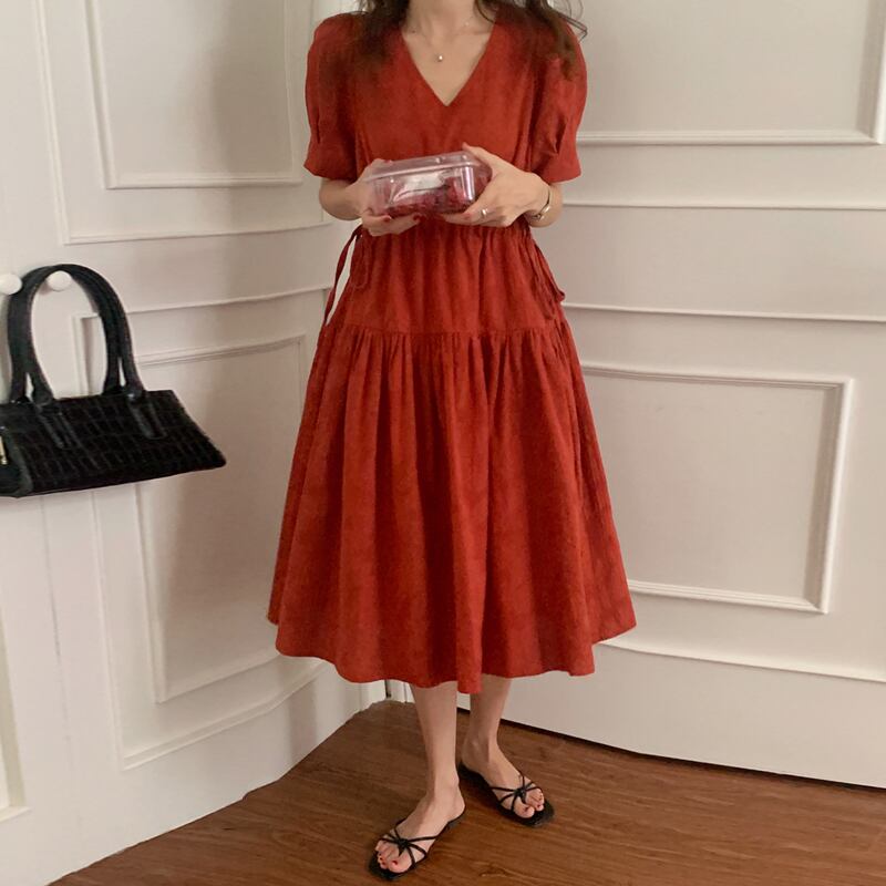 Vネックドレス サマーウェスト薄手スタイルスカート 夏物 試着室25916862853