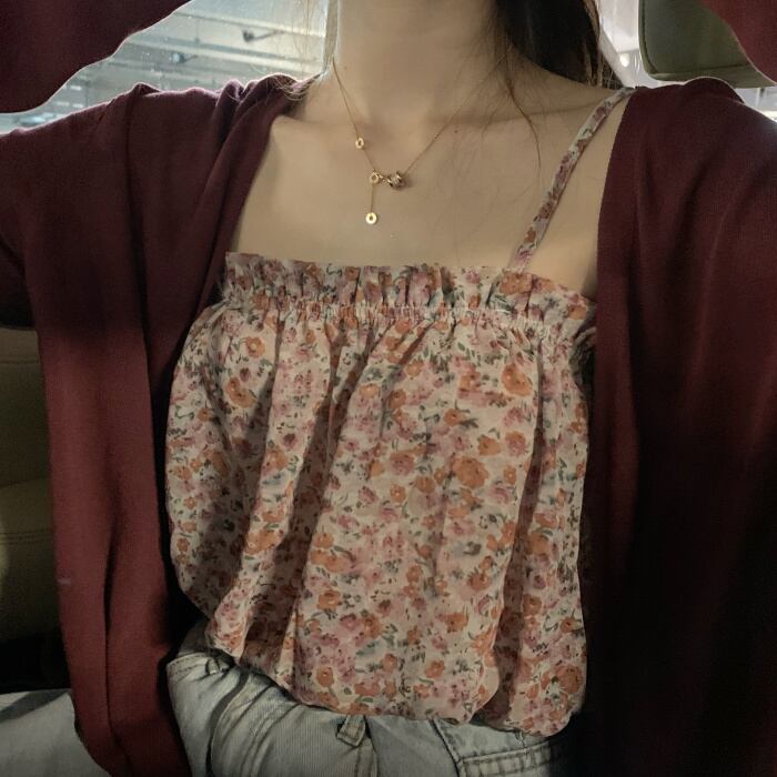 スタイルスプリングオータムトップス ショートフローラルシフォン 春物 秋物 花柄 試着室71406075990
