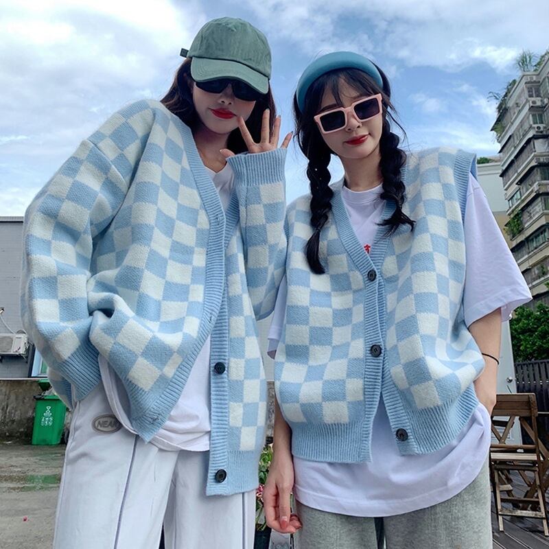 格子柄セーター コート スプリングオータムスタンダードルーズVネックニットカーディガン レトロ 春物 秋物 試着室40765269737
