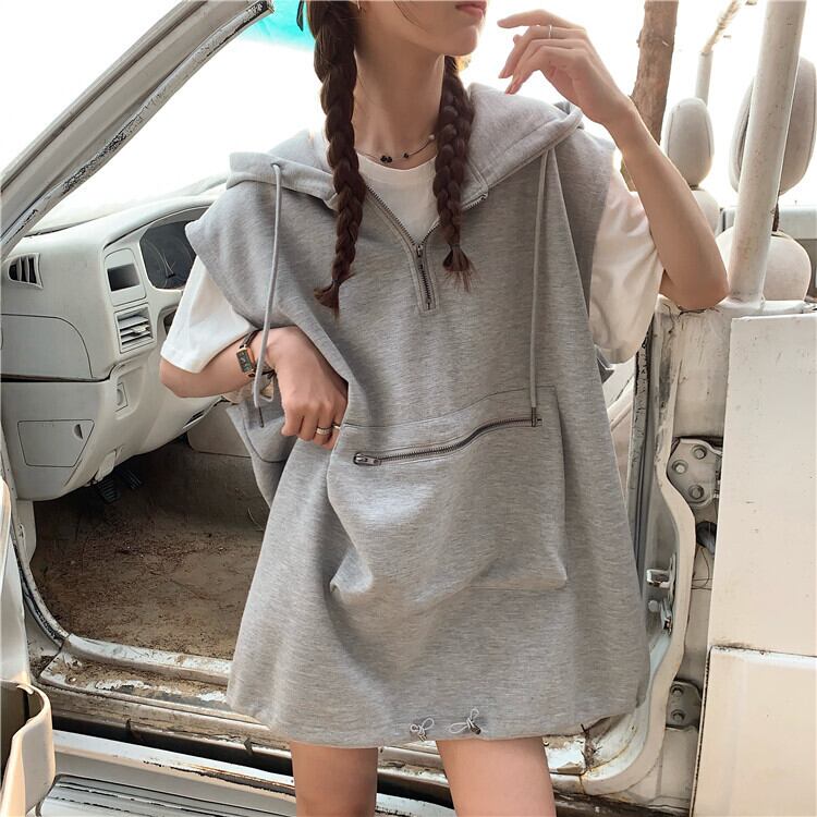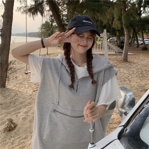 フードセーター スプリングオータム薄手スタイルレッドノースリーブジャケット 春物 秋物 試着室26353106003