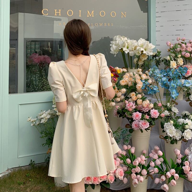 スリーブドレス サマーホルターリボンスカート 夏物 試着室89063083730
